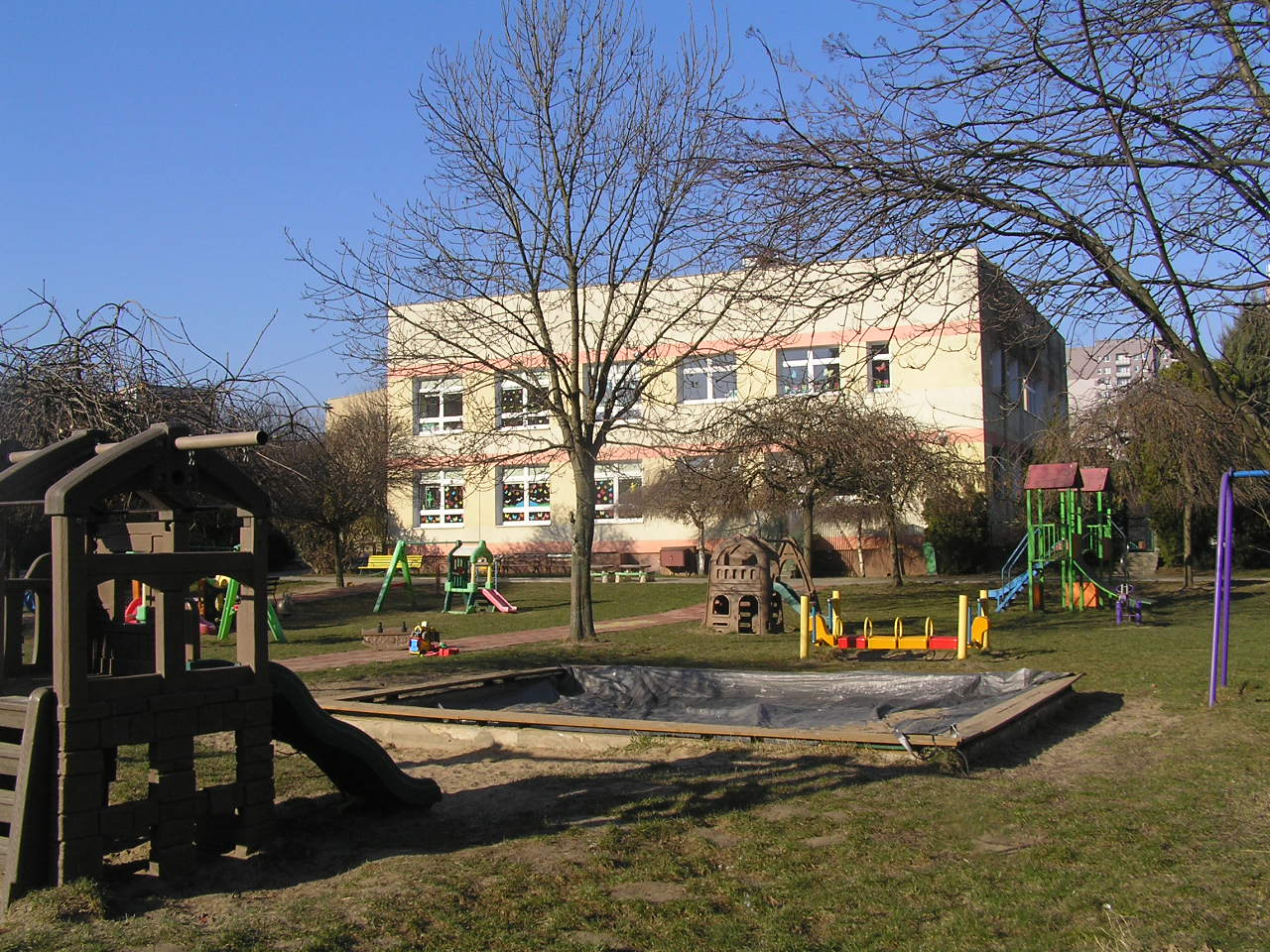 Piętrowy budynek przedszkola został wzniesiony w latach 1989-1991.