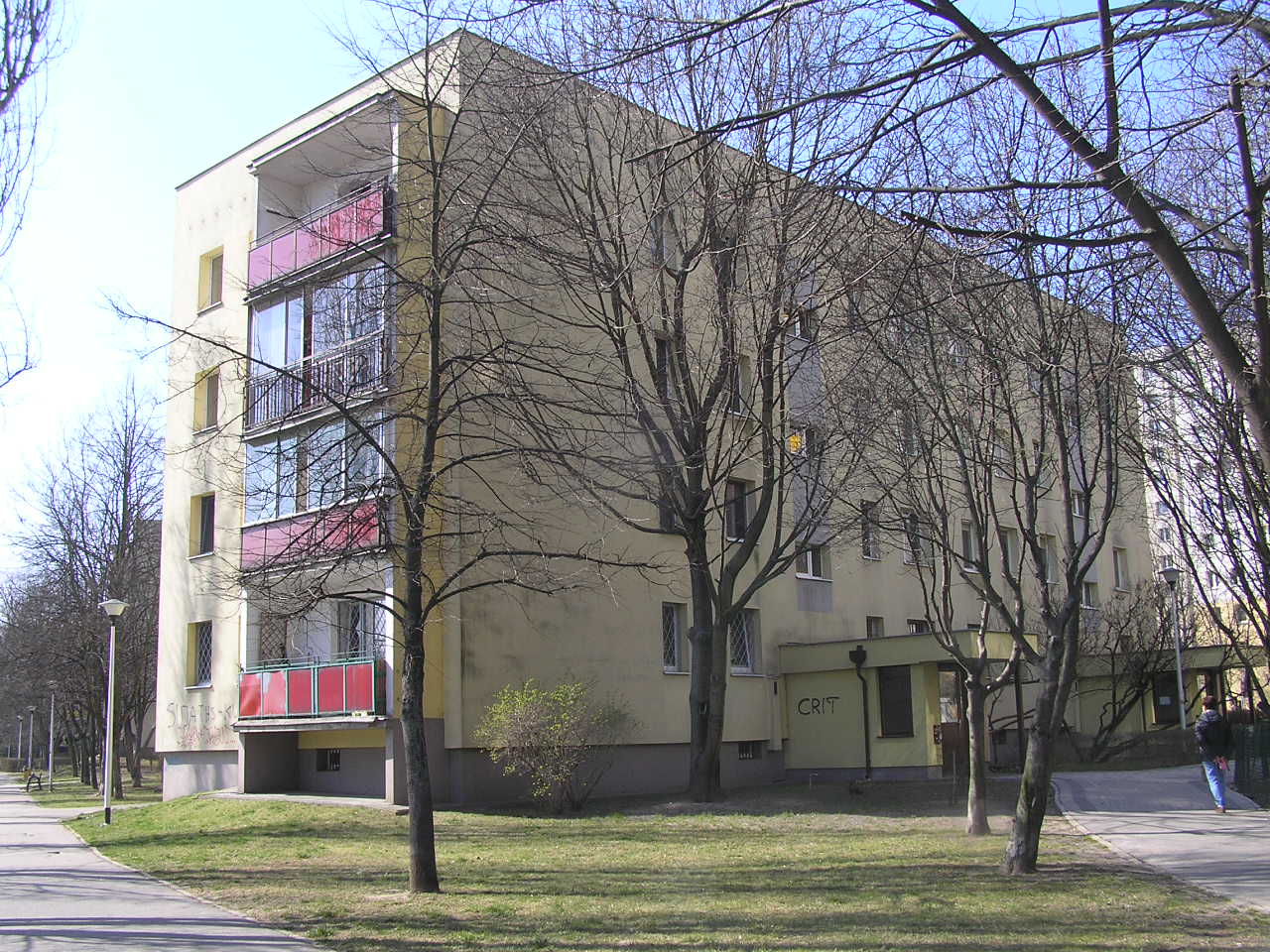 Trzypiętrowy budynek został wzniesiony około 1986 roku. Posiada kilkadziesiąt lokali mieszkalnych.