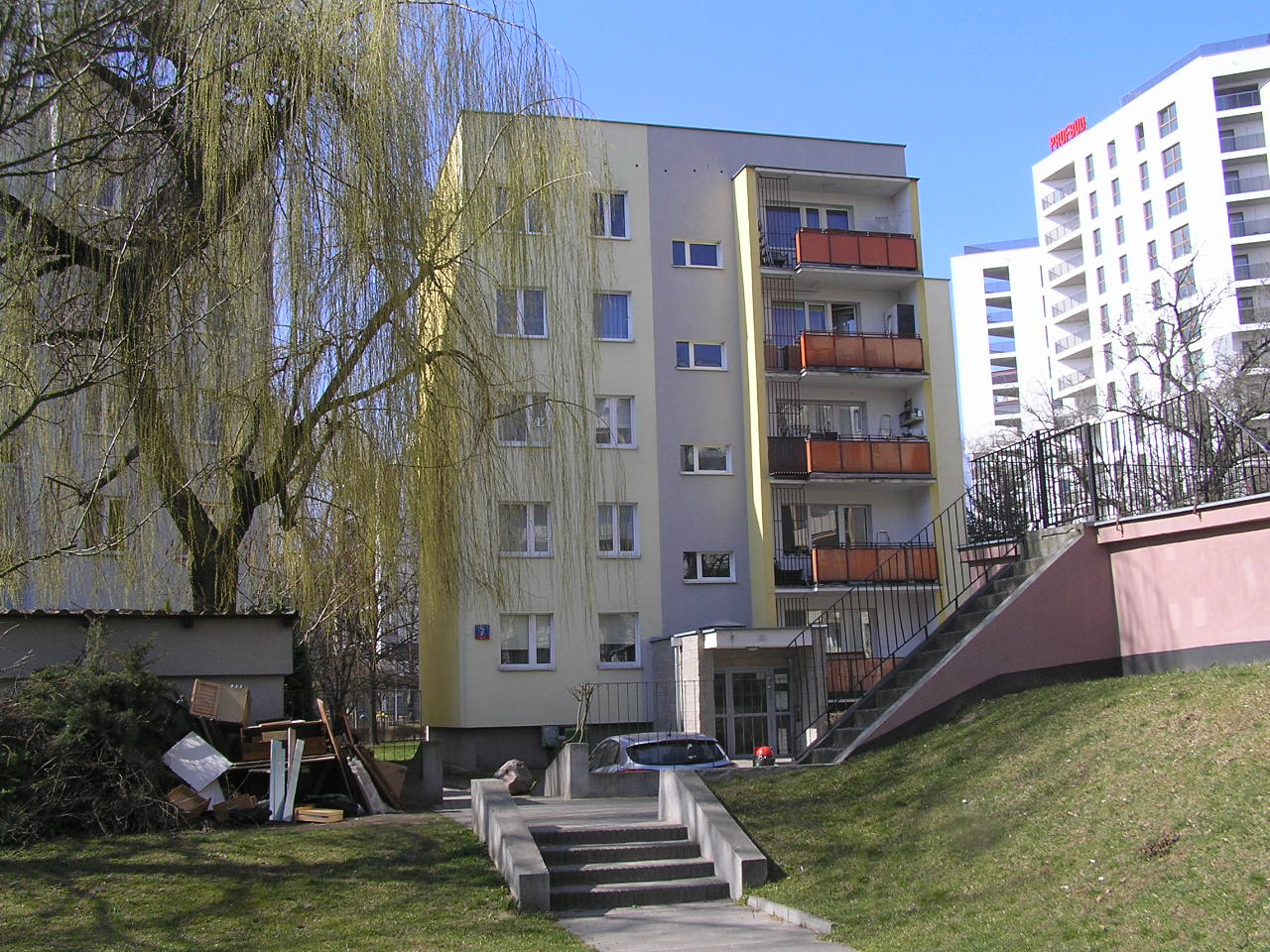 Czteropiętrowy budynek został wzniesiony około 1988 roku. Posiada kilkadziesiąt lokali mieszkalnych.