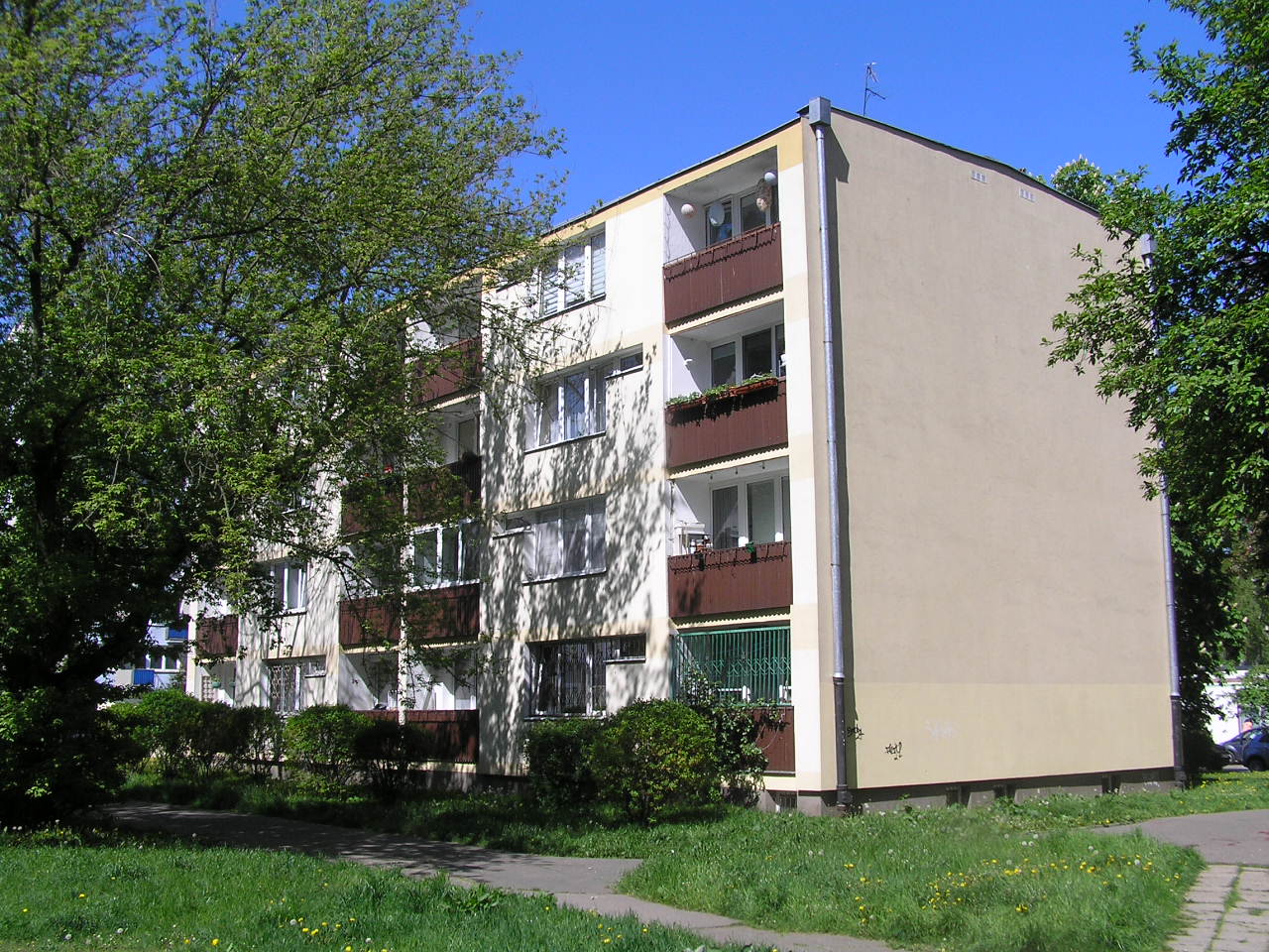 Trzypiętrowy budynek został wzniesiony około 1962 roku. Posiada kilkadziesiąt lokal mieszkalnych.